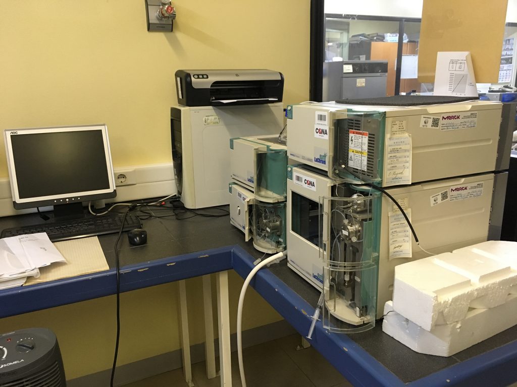 • HPLC Hitachi Elite Lachrom (Organizer, Bomba L-2130, Autosampler L-2200, Detector L-2420).