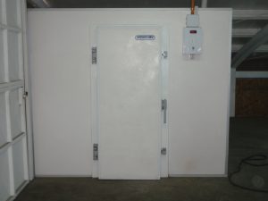 Cámara frigorífica para el almacenamiento de materias primas y productos, que cumple la función de aislar y mantener una temperatura baja estable durante el tiempo. Cuenta con cerca de 12 metros cubicos de espacio para almacenaje.