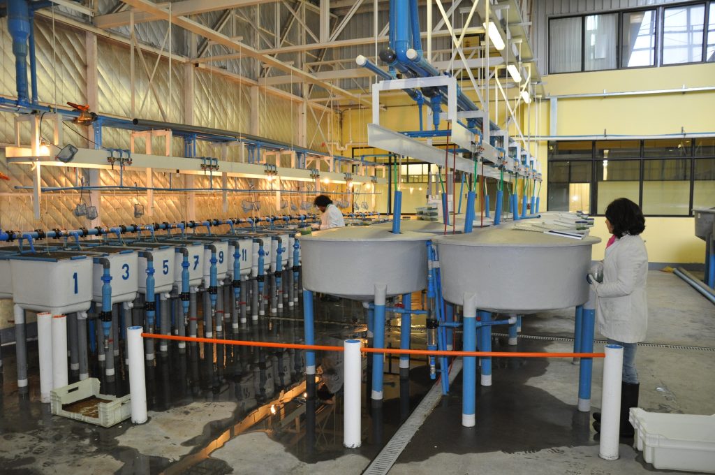• 1 Unidad de recirculación con 30 estanques de 100 litros para estudios de crecimiento en agua dulce.